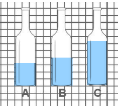 Vẽ mực nước ở ba chai để chai A có ít nước nhất, chai C có nhiều nước nhất.