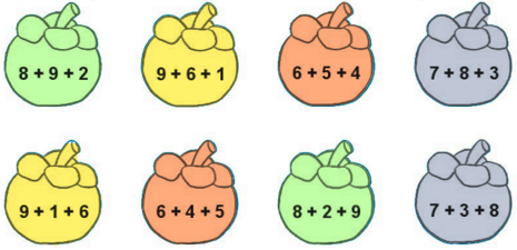 Tô màu giống nhau cho những quả có tổng bằng nhau