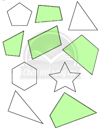 Hình tứ giác là hình có 4 cạnh và 4 đỉnh. Vậy em tô được các hình như sau: