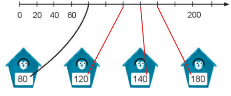 Mỗi một vạch trên trục số hơn kém nhau 20 đơn vị. Vậy em điền được như sau: