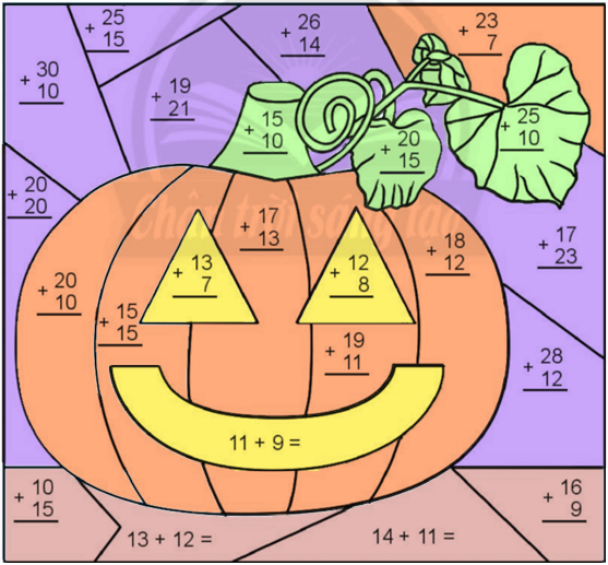 Em thực hiện các phép tính và thực hiện tô màu theo yêu cầu của đề bài: