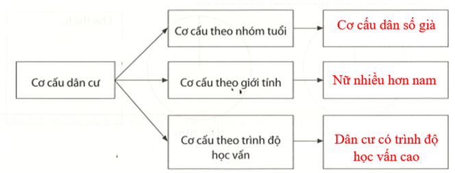 Câu 3 trang 9 vở thực hành Địa lí 7: Hoàn thành sơ đồ về đặc điểm cơ cấu dân cư châu Âu.