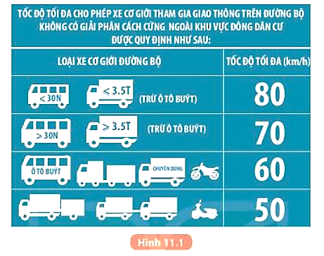 Bài 11.1 trang 36 vở thực hành KHTN lớp 7 Tập 1: Tại sao phải quy định tốc độ giới hạn đối với các phương tiện giao thông khác nhau, trên những cung đường khác nhau? So sánh tốc độ tối đa của các phương tiện giao thông khác nhau trong bảng và giải thích tại sao có sự khác biệt giữa các tốc độ này (xem Hình 11.1 SGK KHTN 7).