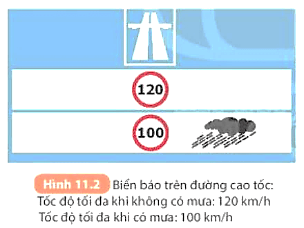 Bài 11.2 trang 37 vở thực hành KHTN lớp 7 Tập 1: Giải thích sự khác biệt về tốc độ tối đa khi trời mưa và khi trời không mưa của biển báo tốc độ trên đường cao tốc ở Hình 11.2 SGK KHTN 7.