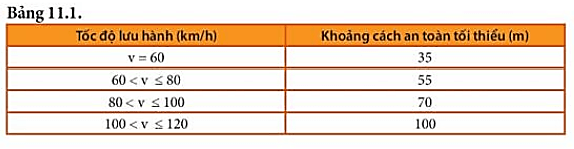 Bài 11.3 trang 37 vở thực hành KHTN lớp 7 Tập 1: Tại sao người ta phải quy định khoảng cách an toàn ứng với các tốc độ khác nhau giữa các phương tiện giao thông đường bộ (xem Bảng 11.1). Tìm cách chứng tỏ người điều khiển phương tiện giao thông có tốc độ càng lớn thì càng không có đủ thời gian cũng như khoảng cách để tránh va chạm gây tai nạn.