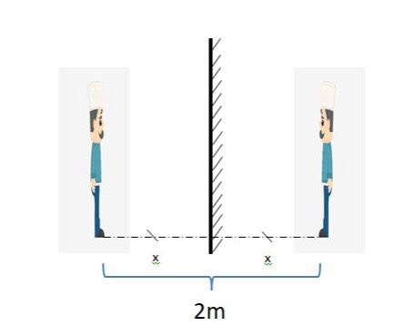 ⇒Khoảng cách từ người đến ảnh là x+x=2x(m).