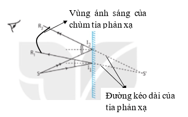 + Ảnh 1 đến trước gương phẳng 2 trở thành vật đối với gương phẳng 2 và cho ảnh 2. Ảnh 2 cũng là ảnh ảo, ngược chiều với ảnh 1 và bằng vật.