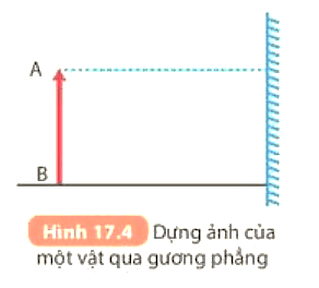 Bài 17.8 trang 58 vở thực hành KHTN lớp 7 Tập 1: Dựa vào tính chất đối xứng của ảnh và vật qua gương phẳng, hãy dựng ảnh của vật AB qua gương phẳng (Hình 17.4).