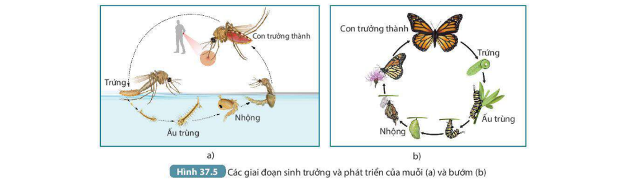 Hình thái của muỗi và bướm ở các giai đoạn khác nhau trong vòng đời là khác nhau (con non của hai loài này có hình thái khác biệt hoàn toàn so với con trưởng thành).