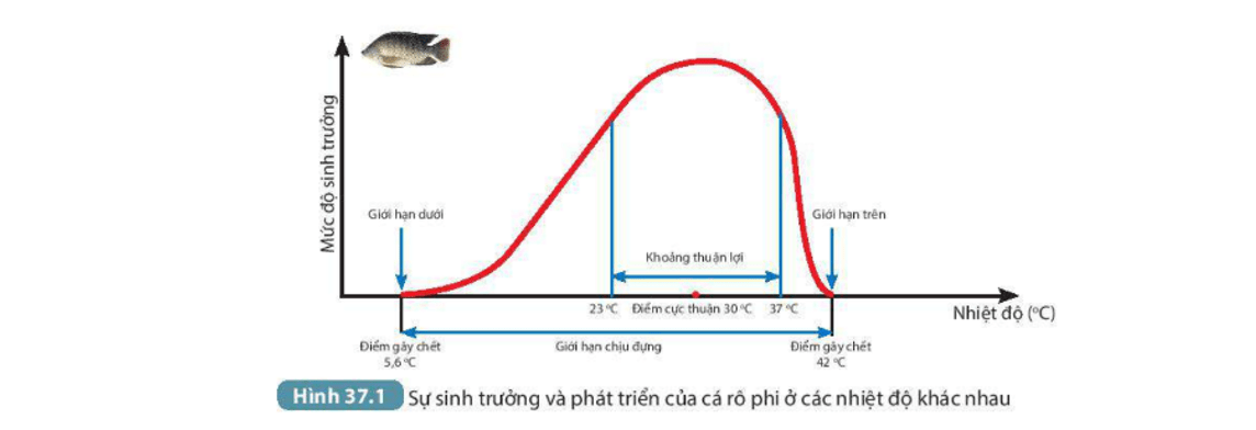 Nhiệt độ thuận lợi nhất cho sinh trưởng và phát triển của cá rô phi là bao nhiêu? Nhiệt độ quá cao hoặc quá thấp so với nhiệt độ cực thuận có ảnh hưởng như thế nào tới mức độ sinh trưởng và phát triển của sinh vật?