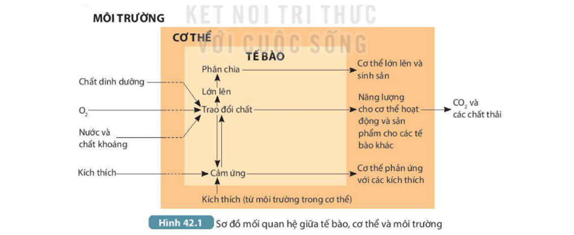 Quan sát hình dưới, mô tả mối quan hệ giữa tế bào, cơ thể và môi trường