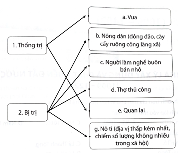 Câu 5 trang 37 vở thực hành Lịch sử 7: Hãy nối ô chữ bên phải với ô chữ bên trái sao cho phù hợp về sự phân hóa các tầng lớp xã hội thời Đinh - Tiền Lê
