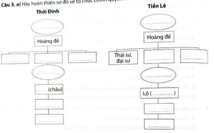 a) Hãy hoàn thiện sơ đồ về tổ chức chính quyền thời Đinh và Tiền Lê.