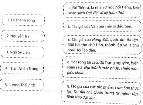Ghép nối: 1 – c); 2 – g); 3 – a); 4 – b); 5 – e)