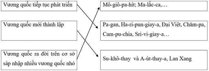 Câu 5 trang 25 vở thực hành Lịch sử 7: Hãy trình bày sơ lược sự hình thành và phát triển của các vương quốc phong kiến ở Đông Nam Á từ nửa sau thế kỉ X đến nửa đầu thế kỉ XVI.