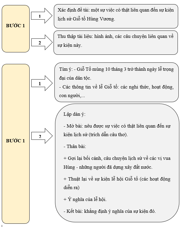 Hoàn thành sơ đồ dưới đây để thực hiện bước 1, bước 2 trong quy trình viết cho đề bài sau: