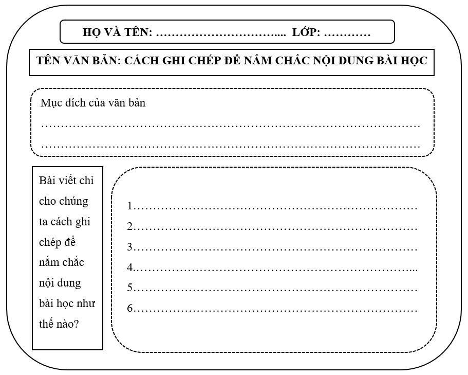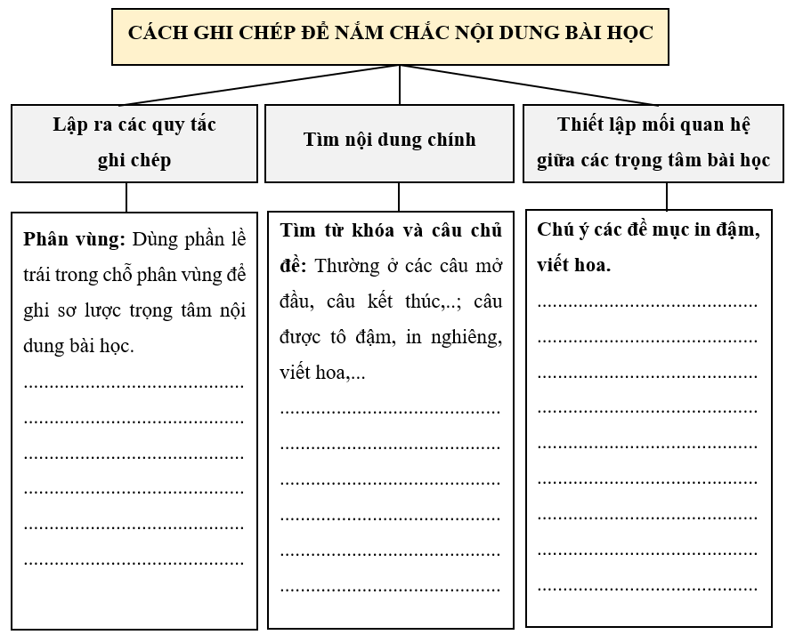 Đọc văn bản Cách ghi chép để nắm chắc nội dung bài học và hoàn thành phiếu học tập sau: