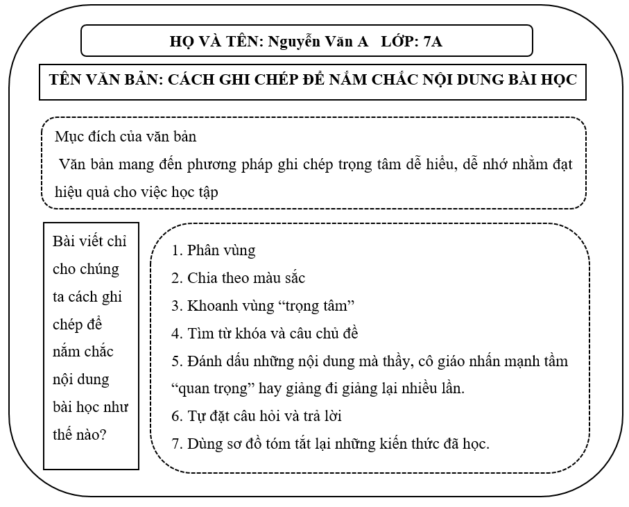 - Thông qua đọc văn bản, em có thể áp dụng các phương pháp trọng tâm đó để có thể ghi chép một cách khoa học hơn và đạt hiệu quả cao trong học tập.