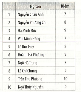 Em hãy tạo bảng liệt kê các bước thực hiện thuật toán tìm kiếm tuần tự để tìm tên học sinh đạt điểm 10.