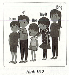 Bổ sung 16.7 trang 80 vở thực hành Tin lớp 7: Em sử dụng thuật toán sắp xếp chọn để sắp xếp hàng cho các bạn trong Hình 16.2 theo thứ tự từ thấp đến cao.
