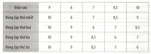 Vòng lặp thứ ba: Bạn Hải sẽ đổi chỗ cho bạn Tuyết. Kết thúc vòng lặp thứ ba thứ tự sắp xếp sẽ là Hoa, Nam, Tuyết, Hải, Hồng.