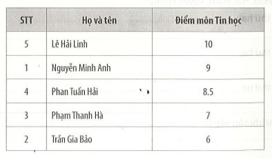 Sau khi sắp xếp điểm theo thứ tự giảm dần em điền tên các bạn tương ứng với điểm để được bạn đã sắp xếp như sau: