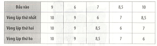 a) Các vòng lặp thực hiện thuật toán sắp xếp nổi bọt để sắp xếp điểm theo thứ tự giảm dần: Mỗi vòng lặp sẽ duyệt các phần tử từ cuối danh sách, so sánh với phần tử trước đó nếu phần tử trước nhỏ hơn thì đổi chỗ.