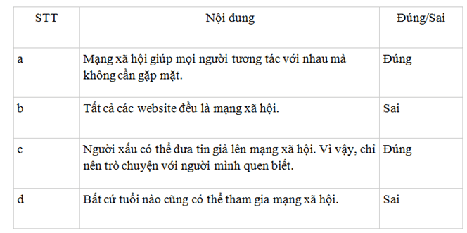 Luyện tập 4.4 trang 16 vở thực hành Tin lớp 7: Các câu nói về mạng xã hội sau đây đúng hay sai?
