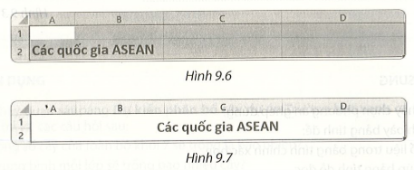 Bổ sung 9.9 trang 48 vở thực hành Tin lớp 7: Để tiêu đề của bảng chọn trong Hình 9.6 được căn giữa và có kết quả như Hình 9.7, em chọn các ô cần căn rồi chọn nút lệnh nào sau đây?