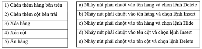 Bổ sung 9.6 trang 47 vở thực hành Tin lớp 7: Em hãy chọn phương án ghép đúng trình bày bảng tính để:
