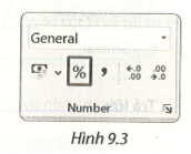 Gợi ý: Cách tính là lấy số cây được phân bố của mỗi tên cây chia cho 50, rồi định dạng kết quả theo khuôn dạng số phần trăm bằng cách: chọn lệnh Format Cell/ Number/ Percentage hoặc nhấn nút lệnh ký hiệu % trong nhóm lệnh Number (Hình 9.3)
