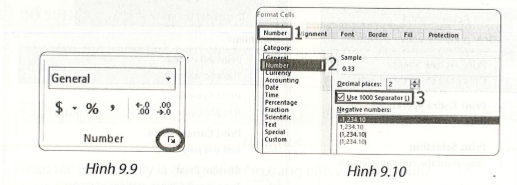 - Chọn trang Number, chọn Number và chọn Use 1000 Separator (,) (Hình 9.10).