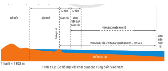 Câu 4 trang 48 vở thực hành Địa Lí 8: Vẽ mặt cắt khái quát các vùng biển Việt Nam trên Biển Đông