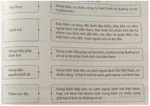 Câu 6 trang 49 vở thực hành Địa Lí 8: Điền cụm từ thích hợp vào chỗ trống để hoàn thành thông tin về vùng biển Việt Nam ở Biển Đông