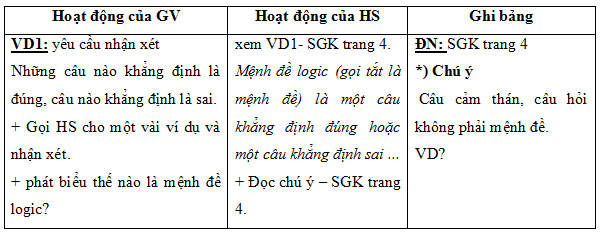 Giáo án Đại số 10 bài 1: Mệnh đề