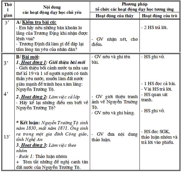 Giáo án bài Nguyễn Trường Tộ mong muốn canh tân đất nước