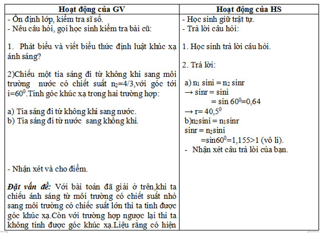 2. Học sinh: Ôn lại định luật khúc xạ.