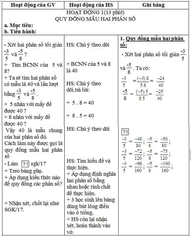 Giáo án bài Quy đồng mẫu nhiều phân số