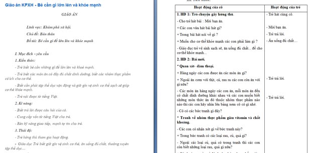 Ngoài File PowerPoint, giáo án Bé cần gì lớn lên và khỏe mạnh còn có file Word có thể tải về và chỉnh sửa, mời các cô tham khảo.