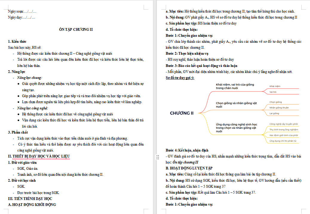 Giáo án Công nghệ Chăn nuôi 11 Ôn tập chương 2