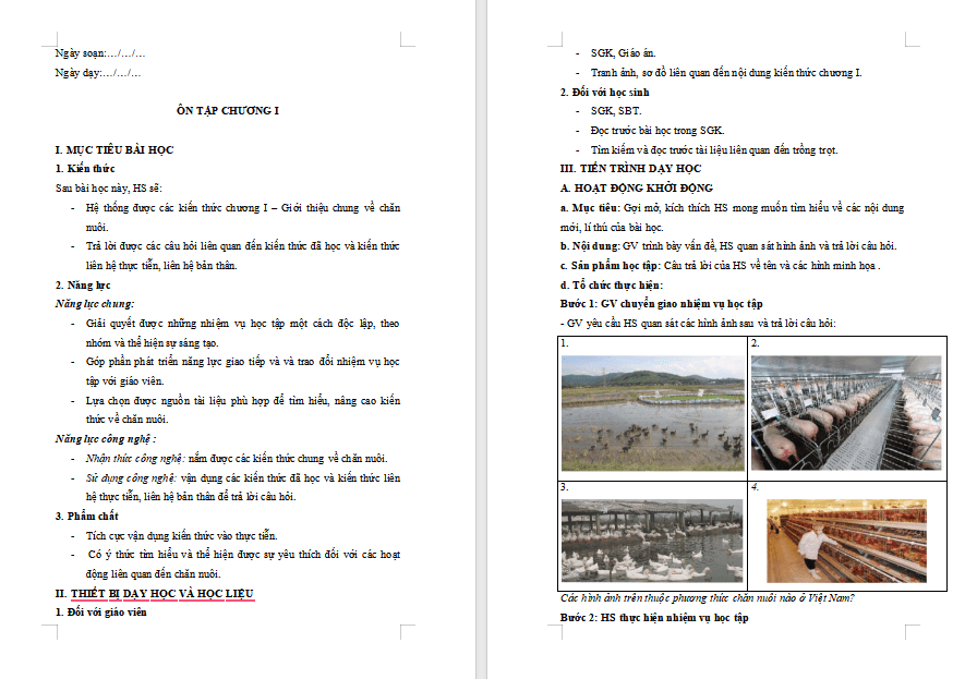 Giáo án Công nghệ Chăn nuôi 11 Ôn tập chương 1