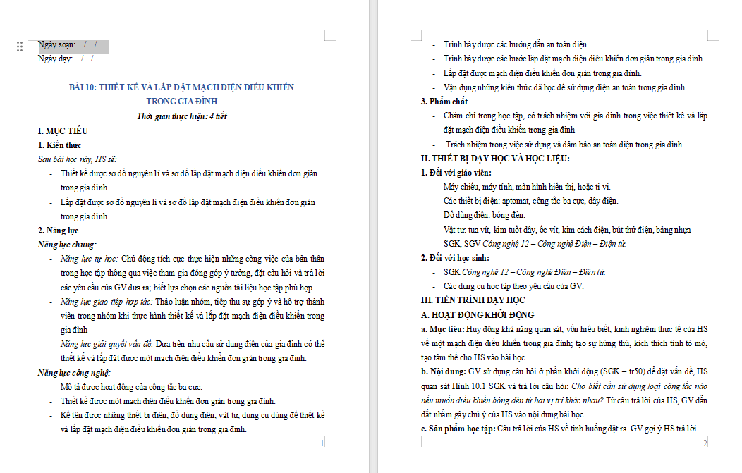 Giáo án Công nghệ 12 Bài 10: Thiết kế và lắp đặt mạch điện điều khiển trong gia đình là tài liệu rất hữu ích được biên soạn dưới dạng PPT + Word. Qua đó giúp quý thầy cô tiết kiệm thời gian làm bài giảng điện tử cho riêng mình.