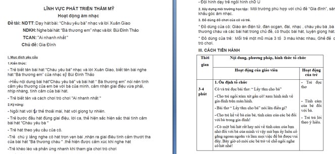 Ngoài File PowerPoint, giáo án dạy hát “Cháu yêu bà” còn có file Word có thể tải về và chỉnh sửa, mời các cô tham khảo.