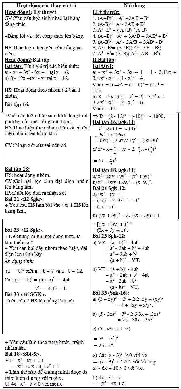 BUỔI 1: ÔN TẬP NHỮNG HẰNG ĐẲNG THỨC ĐÁNG NHỚ