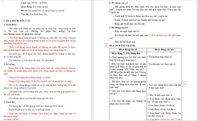 Ngoài File PowerPoint, giáo án dạy trẻ kỹ năng bảo vệ vùng riêng tư còn có file Word có thể tải về và chỉnh sửa, mời các cô tham khảo.