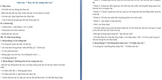 Ngoài File PowerPoint, giáo án dạy trẻ kỹ năng rửa tay còn có file Word có thể tải về và chỉnh sửa, mời các cô tham khảo.