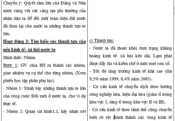 - Biết liên hệ SGK với các vấn đề thực tiễn của cuộc sống, khi tìm hiểu các thành tựu của công cuộc đổi mới.