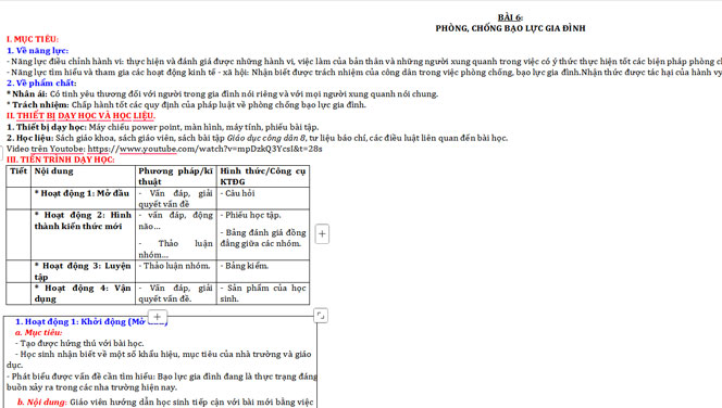 Ngoài File PowerPoint, giáo án GDCD 8 Cánh Diều bài 6: Phòng, chống bạo lực gia đình còn có file Word có thể tải về và chỉnh sửa, mời các cô tham khảo.