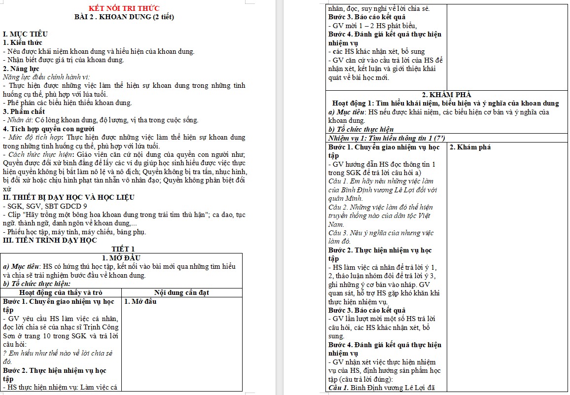 Giáo án Giáo dục công dân 9 Bài 2: Khoan dung