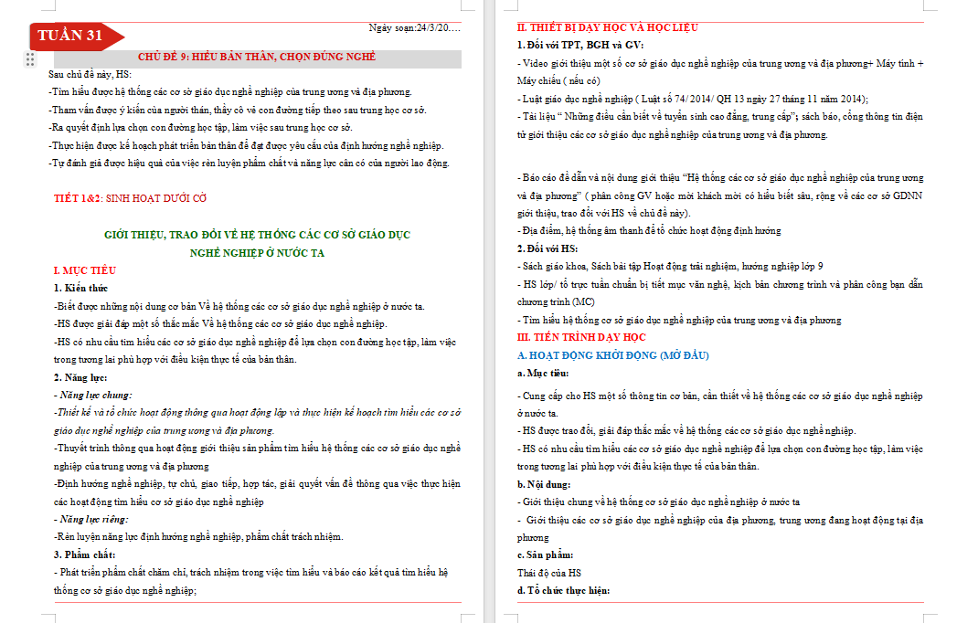 Giáo án Hoạt động trải nghiệm 9 Bài 1: Hệ thống các cơ sở giáo dục nghề nghiệp của trung ương và địa phương là tài liệu rất hữu ích được biên soạn cả dạng Word + PPT. Qua đó giúp quý thầy cô tiết kiệm thời gian làm bài giảng điện tử cho riêng mình.